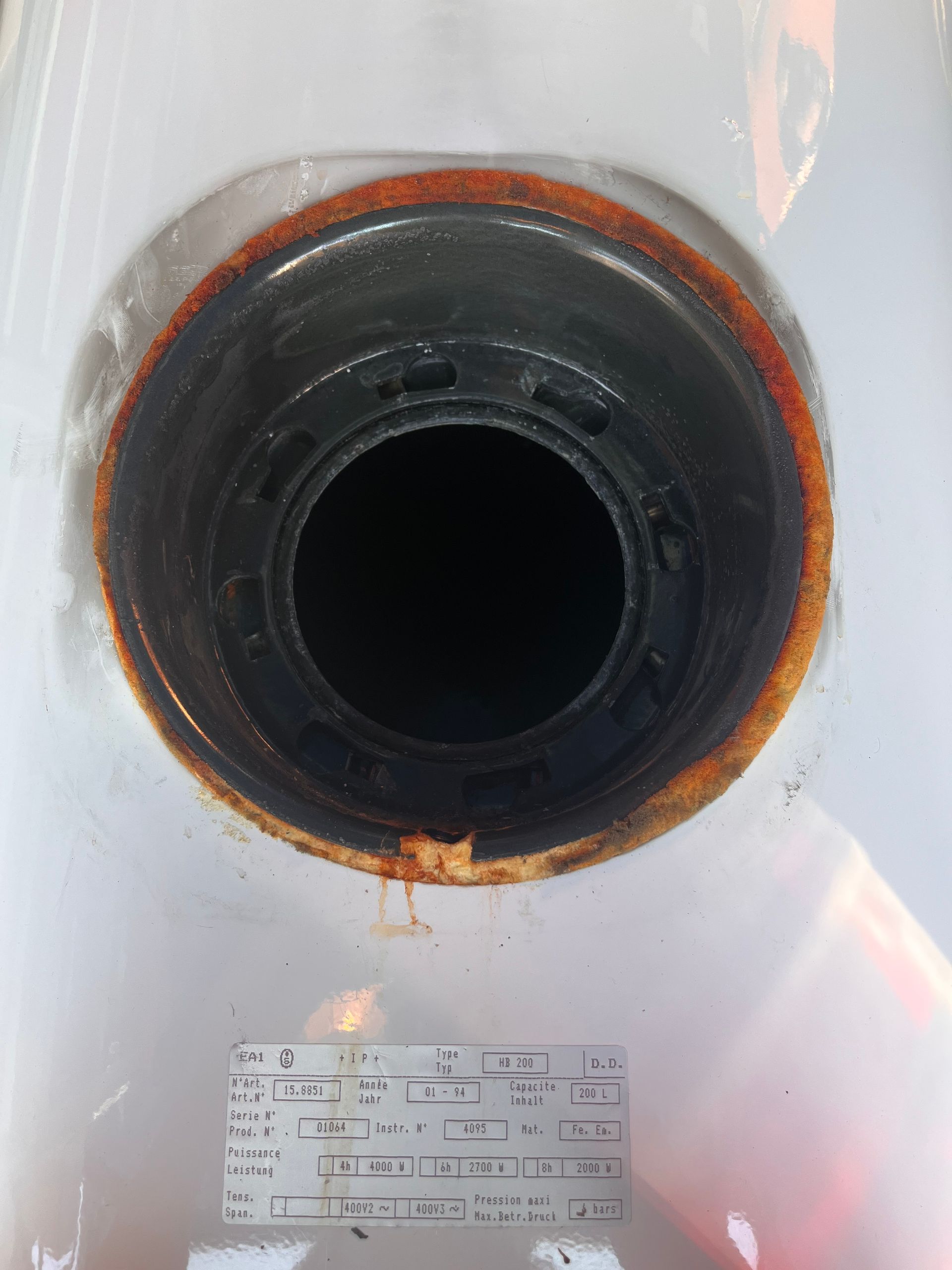 So sieht es in einem Boiler nach ca. 5 Jahren aus. Oft ist von der Schutzanode (auf dem dritten Bild) nur noch weniger übrig: